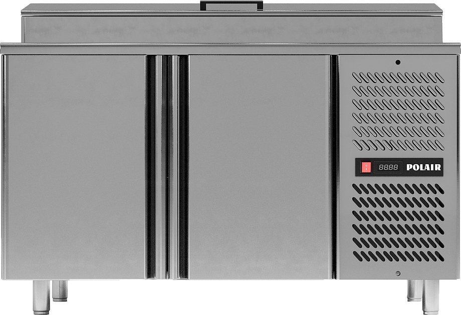 Холодильный стол POLAIR TM2GNVT-G предназначен для хранения продуктов и обработки ингредиентов в пиццерии и ресторане итальянской кухни. Модель оснащена интегрированной витриной и крышкой, которая в режиме работы фиксируется в открытом положении для удобства персонала. Обшивка корпуса и столешница выполнены из нержавеющей стали, термоизоляция корпуса и витрины - из пенополиуретана.