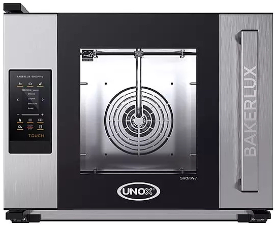 Печь конвекционная UNOX XEFR-04HS-ETRP Arianna серии BAKERLUX SHOP.Pro предназначена для допекания замороженных изделий и выпечки любых хлебобулочных и кондитерских изделий полного цикла на предприятиях общественного питания и торговли, в пекарнях и кондитерских. Модель оснащена электронным управлением с сенсорным ЖК-дисплеем диагональю 2,4" и светодиодным освещением камеры. Камера выполнена из нержавеющей стали AISI 304, направляющие - из хромированной стали.